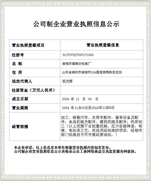 | 現(xiàn)有中,高級(jí)技術(shù)人員數(shù)名有多年的設(shè)計(jì)與制造畜禽宰殺機(jī)械的理論和經(jīng)驗(yàn) | |||||